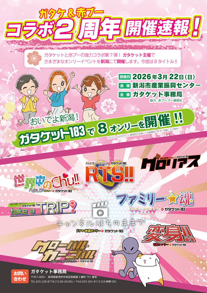 次回、ガタケット183は2026年3月22日(日)開催です。