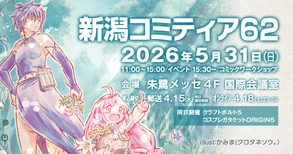 次回、新潟コミティア62は 2026年5月31日(日)、朱鷺メッセにて開催します。