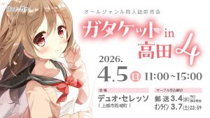 詳細 サークル参加 一般参加 詳細 【名称】18TRIP オンリーイベント「take a TRIP! inガタケット183」【日時】2026年3月22日(日) 10:30~15:30「ガタケット183」併催【会場】新潟市 […]