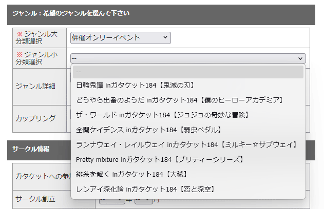 ・イベント一覧から「ガタケット 184併催オンリー」を選択