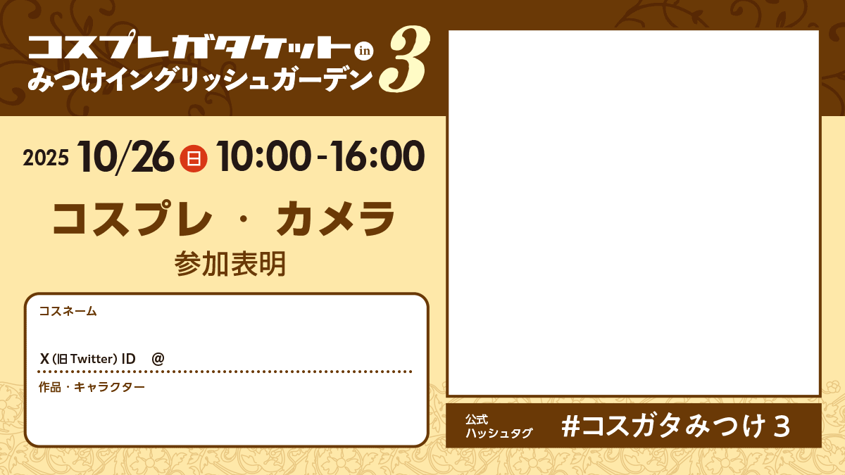 ◆着替えは必ず「コスプレガタケットinみつけイングリッシュガーデン」用更衣室でお願いします。